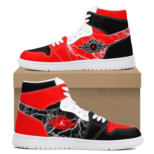 Custom Air Jordan Style Red & Black Lightning High-Top Sneakers