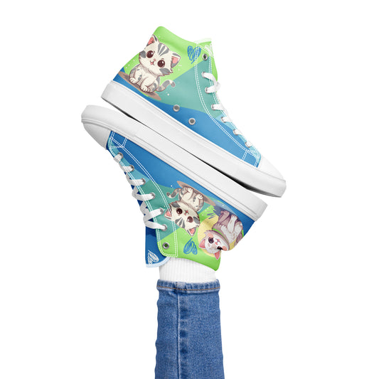 Cute Cats Blue Green Women's High Top Custom Sneakers