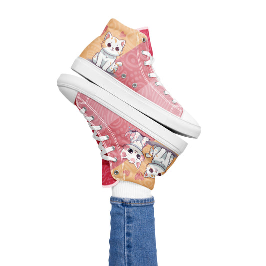 Cute Cats Pink Orange Women's High Top Custom Sneakers
