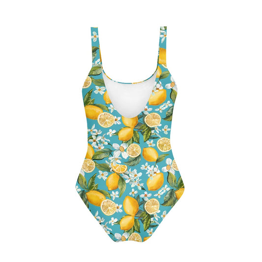 Girls' Floral Lemon Print One-Piece Swimsuit