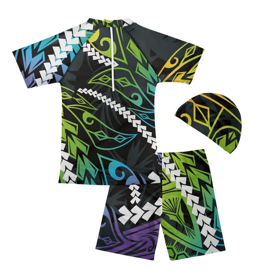 Polynesian Tribal Boys' Three-Piece Swimsuit Set
