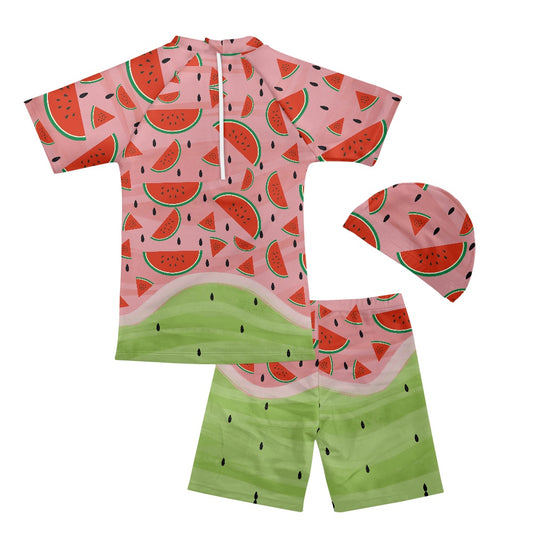 Watermelon Print Boys' Three-Piece Swimsuit Set
