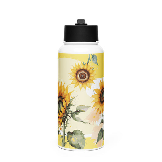 Sunflower Stainless Steel Water Bottle with Straw Lid
