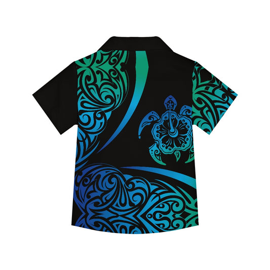 Tribal Turtle Design Hawaiian Shirt for Kids