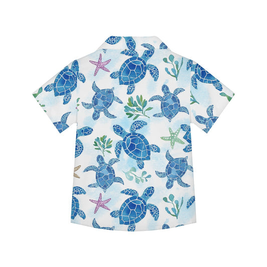 Tropical Ocean Print Sea Turtle Hawaiian Shirt for Kids