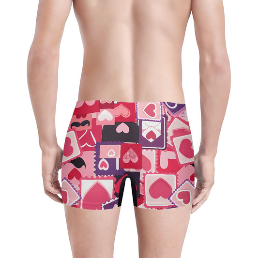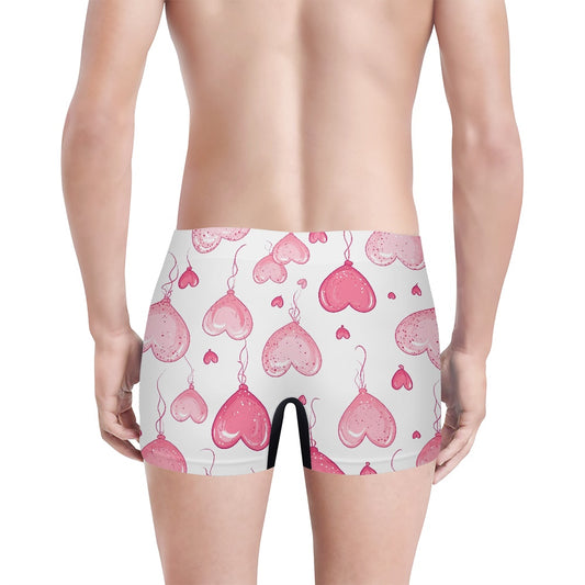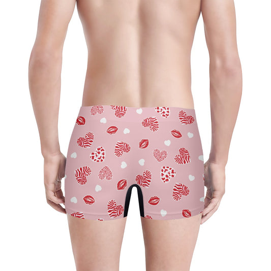Pink Heart & Kiss Print Men's Boxer Briefs