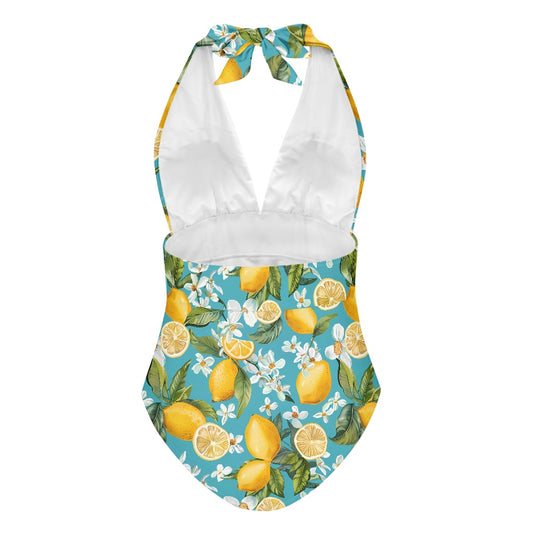 Lemon Print Women's High Cut One-piece Swimsuit