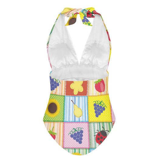 Colorful Patchwork Fruit Print Women's High Cut One-piece Swimsuit